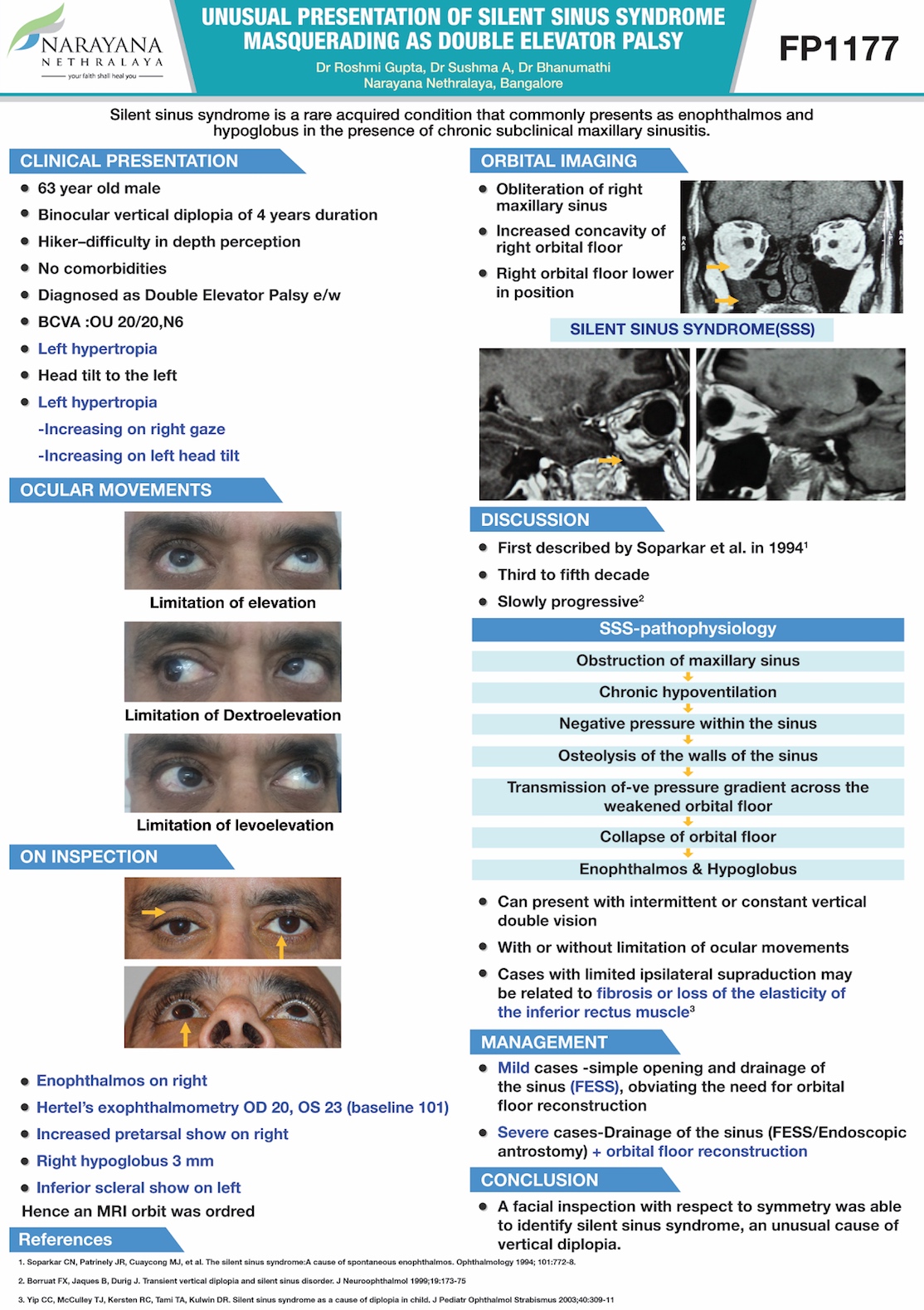 Conclusion: A facial inspection with respect to symmetry was able to identify silent sinus syndrome, an unusual cause of vertical diplopia. Orbital imaging could confirm the diagnosis.