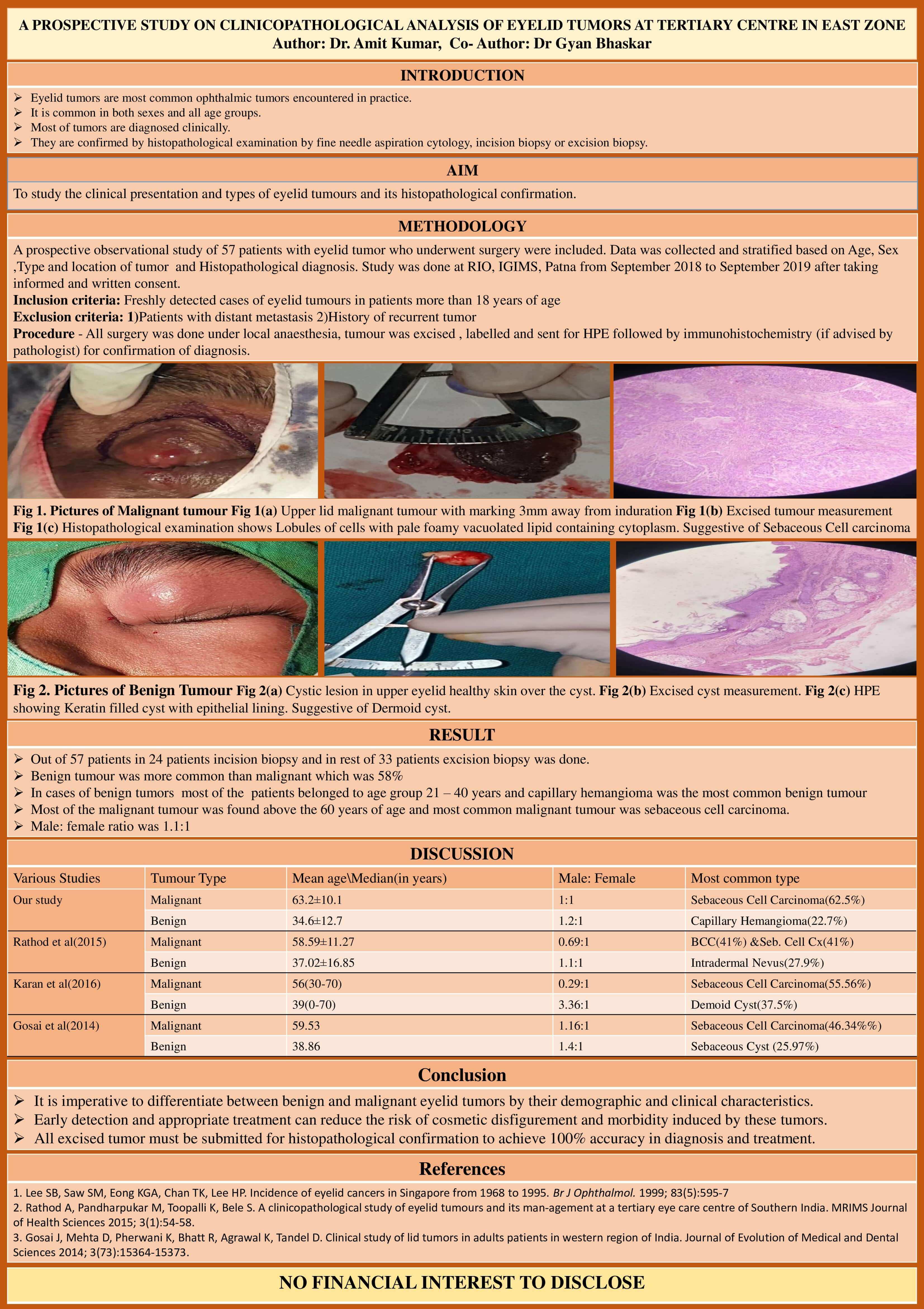 Purpose: To study the clinical presentation and types of eyelid tumours and its histopathological confirmation