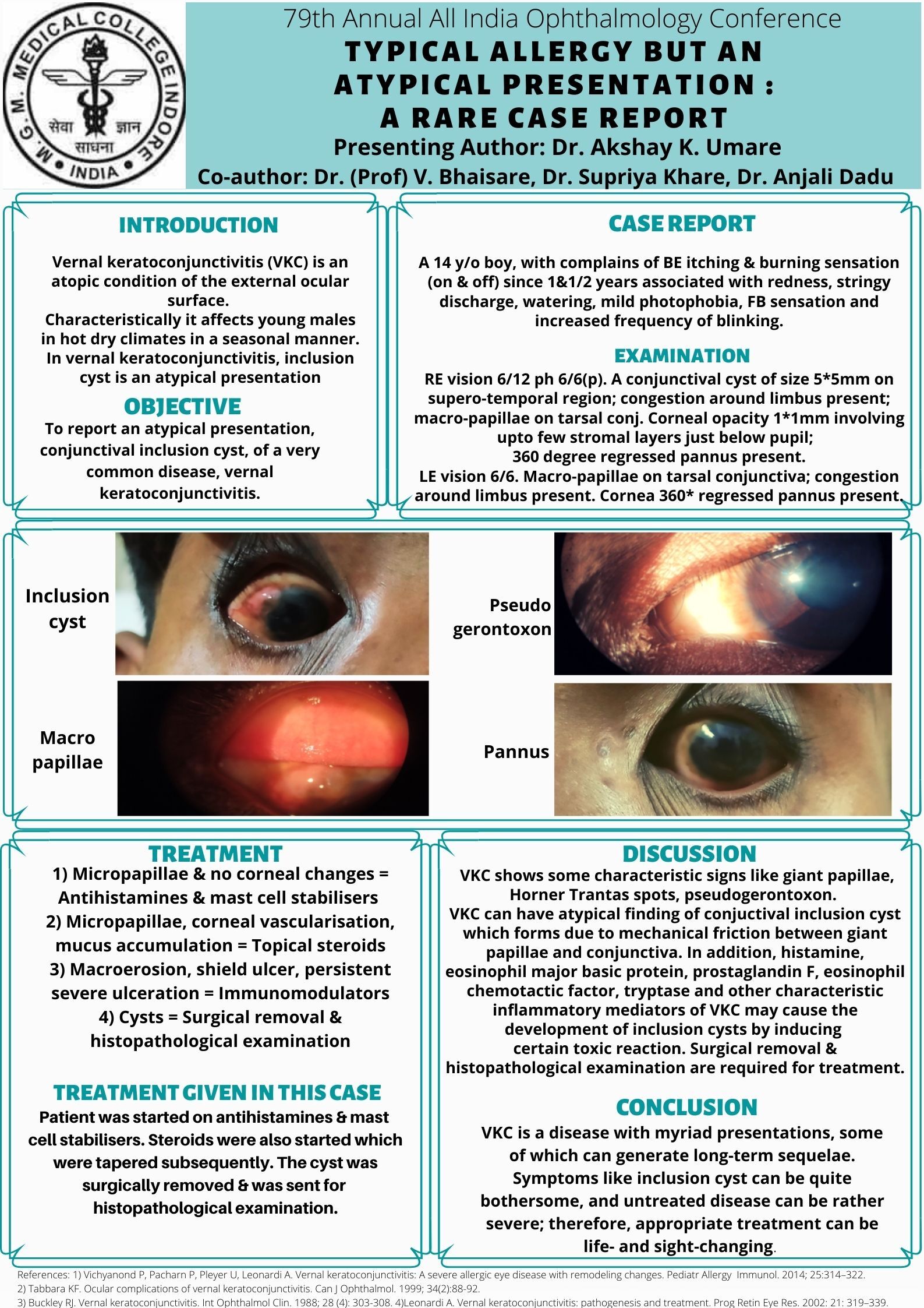 Introduction:In vernal keratoconjunctivitis,inclusion cyst is an atypical presentation